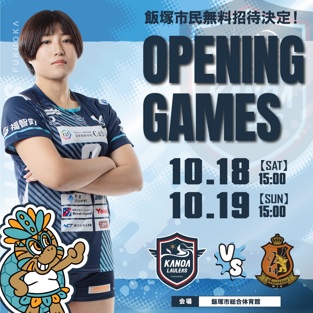 カノアラウレアーズ福岡では、10月18日(土)・19日(日)に開催する2025-26 V.LEAGUE WOMAN第1節 ヴィアティン三重戦に関して、「飯塚市応援デー」を下記の通り開催します。