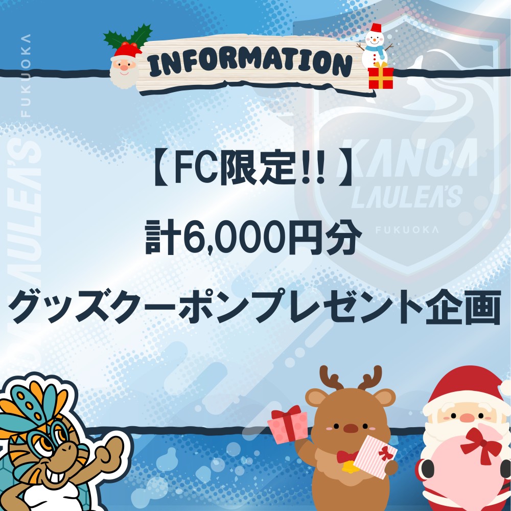 オンラインショップおよびホームゲーム会場のグッズ売り場で使用できるグッズクーポン(合計6,000円分)を配布いたします。