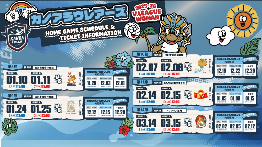 今後ともカノアラウレアーズ福岡への応援をよろしくお願いいたします。